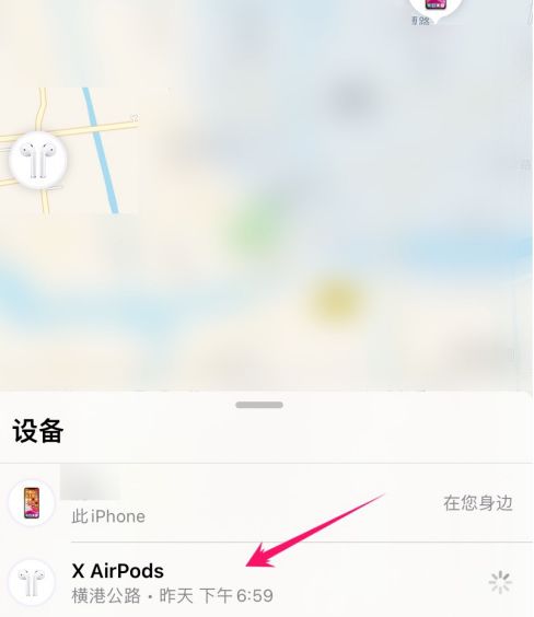 2、进入苹果手机查找页面后,点击绑定的AirPods耳机。