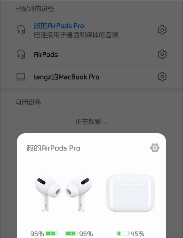 3、手机会自动 搜索 附近的蓝牙设备,点击苹果蓝牙耳机名称配对即可。