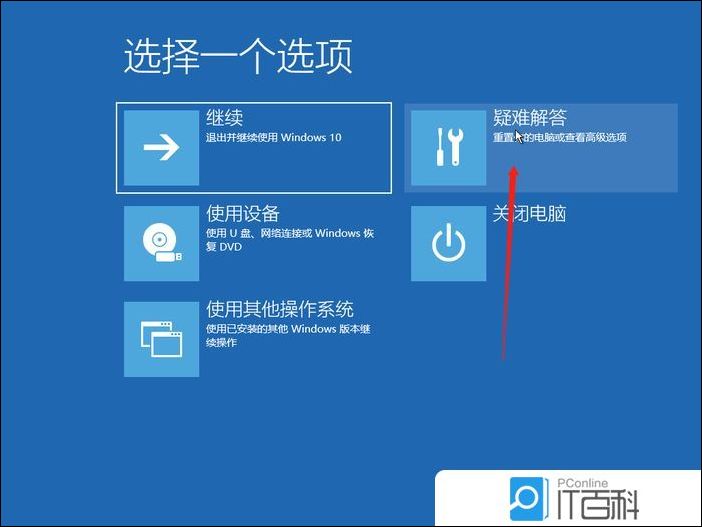 3、选择一个选项窗口中,点击疑难解答(重置你的电脑或查看高级选项);