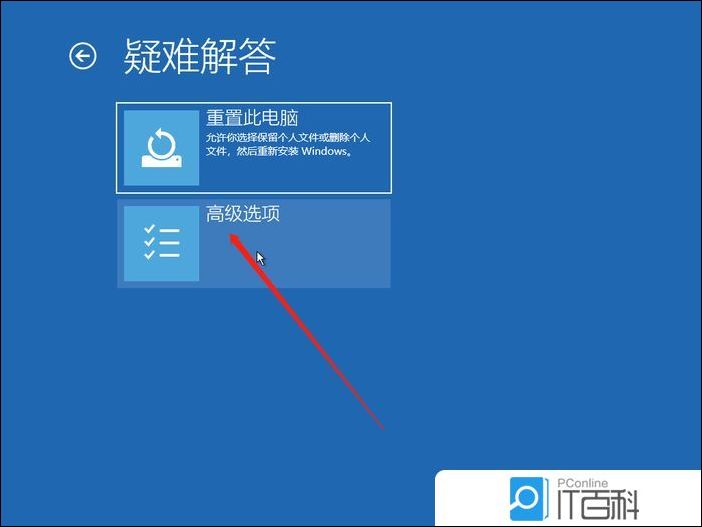 4、疑难解答下,点击高级选项;