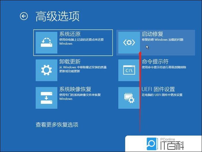 5、高级选项下,点击启动修复(修复妨碍 Windows 加载的问题)来解决问题;