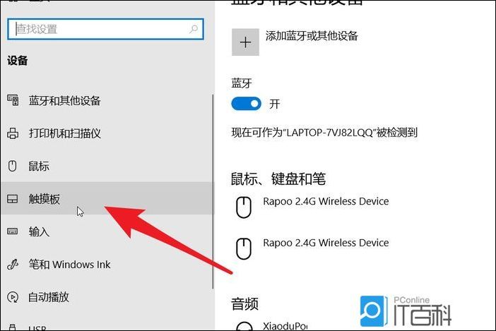 设备设置窗口,左侧边栏,点击触摸板