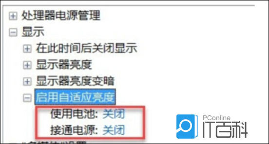 3、然后我们在弹出来的窗口中点击打开“启用自适应亮度”,关闭下方两个选项即可。