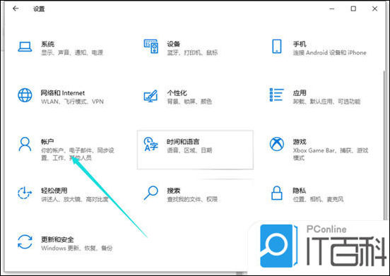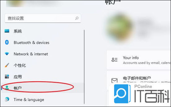 3. 打开设置窗口,在左侧导航菜单中点击进入“账号”,进入账号管理界面;
