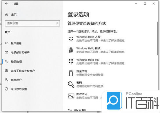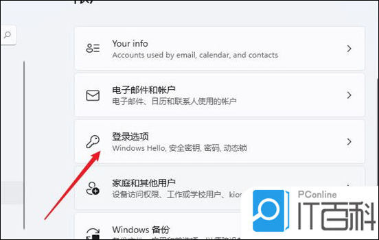 4. 就可以看到一系列的账号相的设置,选项列表中点击进入“登录选项”;