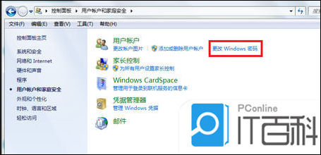 2. 找到并点击点击“用户账户和家庭安全”,点击“更改windows密码”;