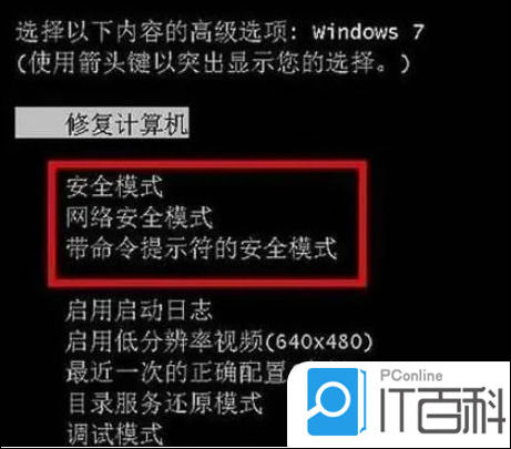 2. 如果不行的话,再次启动电脑之后,我们按F8进入安全模式,然后将最近安装的软件或驱动卸载,杀毒等操作看是否解决黑屏问题。