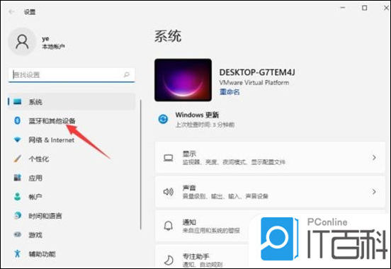 3. 进入设备界面后,选择“蓝牙和其他设备”;