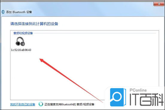 6. 点击搜索,这个时候把蓝牙耳机打开并处于连接状态,然后就可以在电脑上找到对应的蓝牙耳机了。