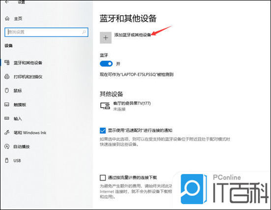 3. 右侧点击“添加设备”,添加蓝牙或其他设备。