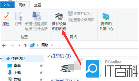 2、接着在网络中显示网上邻居这些,点击上方菜单栏中的添加设备和打印机。