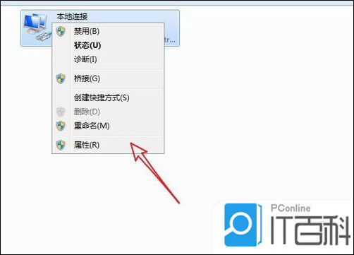 2. 右击网络图标,打开“属性”窗口;