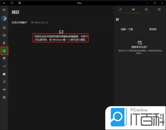 2. 打开Xbox应用后,找到左边工具栏的第四项,点击一下(会提示Win + G);