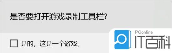 3. 按键盘的“Win + G”键后提示“是否需要打开游戏录制工具栏”,勾选“是的”,就可以启动录屏工具栏;