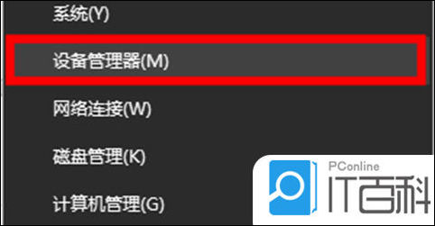 1、同样的右键单击开始菜单,选中“ 设备管理器 ”选项;