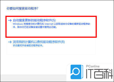 3、打开后选择“ 自动搜索更新的驱动程序软件 ”选项;