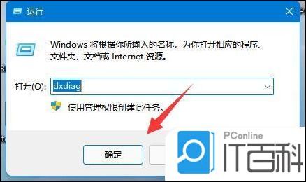 2. 然后输入“dxdiag”并点击确定;