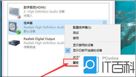 1. 如果按照上面的步骤还没有解决问题的话,我们是需要看看声音播放设备的默认设置属性的。对着扬声器图标击右键,点击选择“属性”选项;