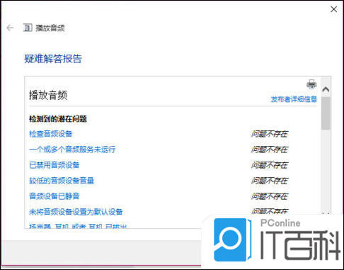 3. 如果疑难解答没有检查出相关的声音问题,在详细的检查报告中也没有给出任何修改建议,那么我们可以考虑使用另一种办法。