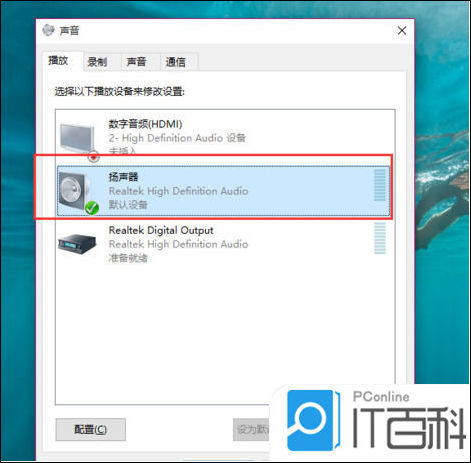 2. 打开播放设备页面之后,我们需要仔细检查一下默认声音的播放设备是否正常。默认的声音播放设备是扬声器,如果声音播放设备默认不是扬声器,那么十有八九就是这里出现问题了;