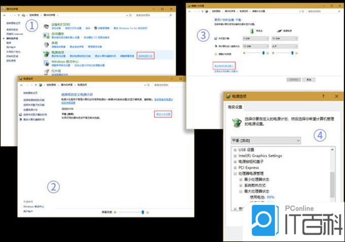 2. 进入控制面板-选择电源选项-选择默认选择的计划-更改计划设置-更改高级电源设置-处理器电源管理-最大处理器状态,将两项数值均调整到 99%,99% 即不开启 Turbo Boost(实际上处理器还是几乎能跑到额定的最大功率)。