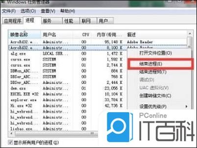 2. 选到非必要的进程,点击结束进程,就可以减少CPU负荷即可给CPU降温。