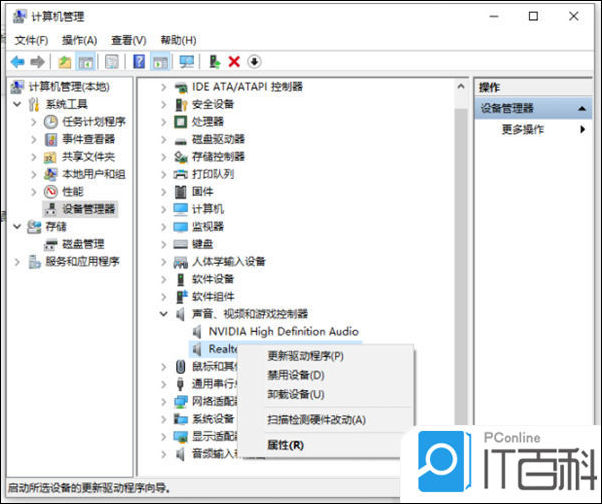 双击打开电脑的 计算机图标(此电脑)——点击管理——点击设备管理器——展开查看声音、视频和游戏控制器 ,然后鼠标右键就可以检查声卡在设备管理器中有没有被禁用,有的话就 开启 即可。(如图的,小编是已经启用的状态)
