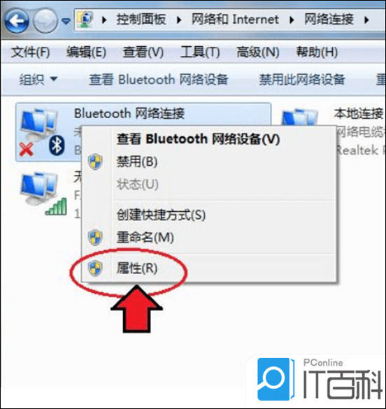 4. 进到页面电脑鼠标右键,点击蓝牙,发生对话框,点击【属性】;