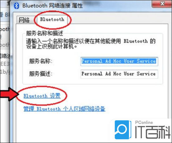 5. 发生对话框,点击【Bluetooth】,再点击【Bluetooth设置】;