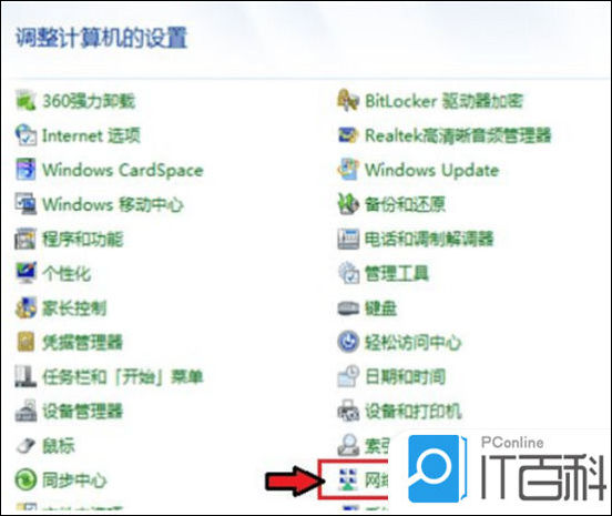 2. 进到控制面板页面,点击【网络和共享核心】;