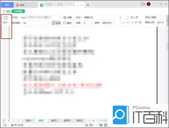 4. 调整好要打印的文档内容大小后点击左上方的打印键打印即可。