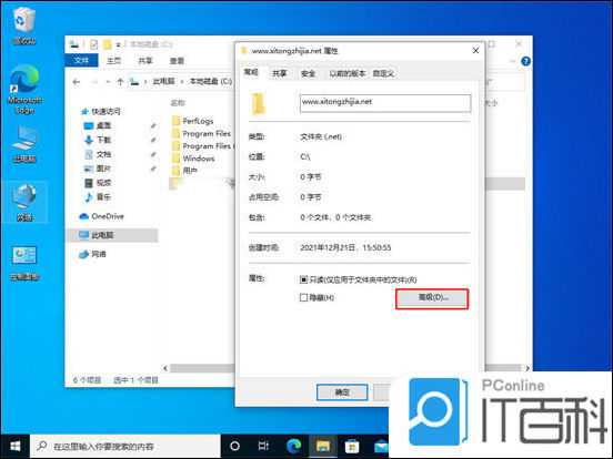 2. 在打开的文件夹属性界面中点击高级按钮,进入下一步;