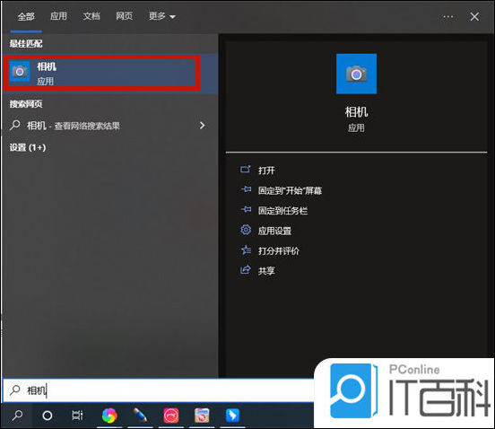 1. 我们使用系统自带的搜索功能,搜索“相机”并打开;