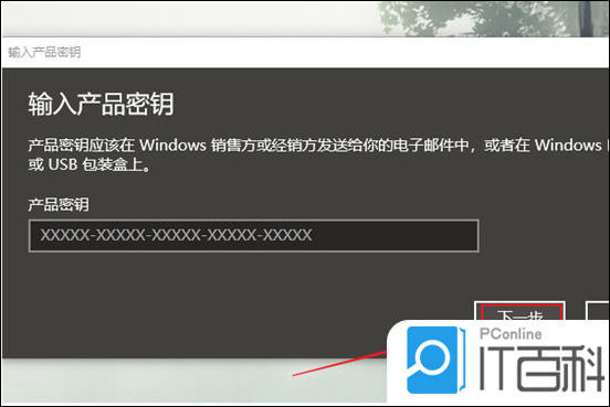 6. 最后在里面输入产品密钥,点击下一步,确定后就可以激活windows。