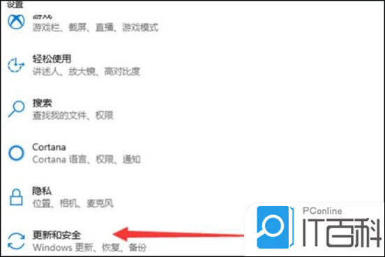 3. 然后点击更新和安全选项;