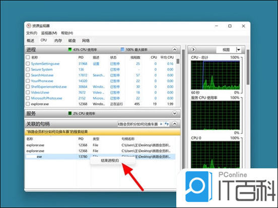 6. 完成程序的选中,鼠标右击,点击结束进程;