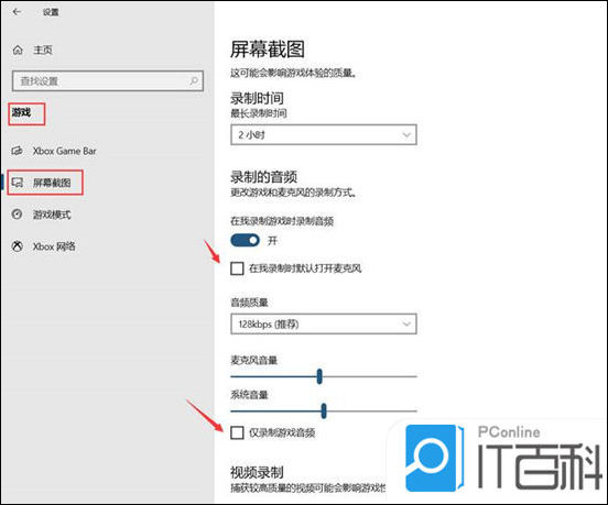 2. 选择屏幕截图,取消勾选“在我录制时默认打开麦克风”和“仅录制游戏音频”;