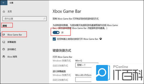 1. 设置-游戏,选择XBOX Game Bar,打开此功能;
