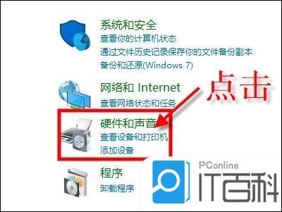 3. 在跳转的界面中找到硬件和声音选项,并点击进入;