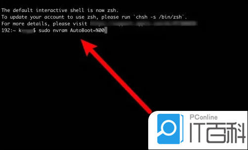 4. 输入命令sudo nvram AutoBoot=%00,按下回车执行即可。