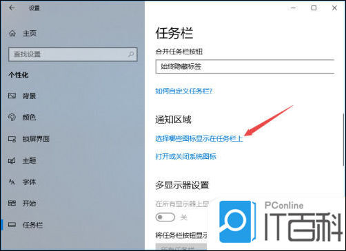 4. 之后在右侧带你及“选择哪些图标显示在任务栏上”;