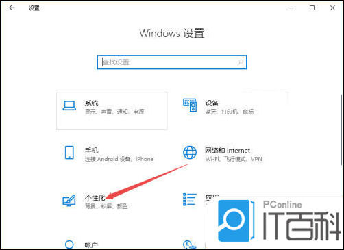 2 .在打开的Windows设置窗口中点击“个性化”这一项;