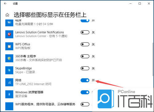 5. 如下图所示,在列表中找到“网络”这一项,点击其后面的开关将其开启就可以了;