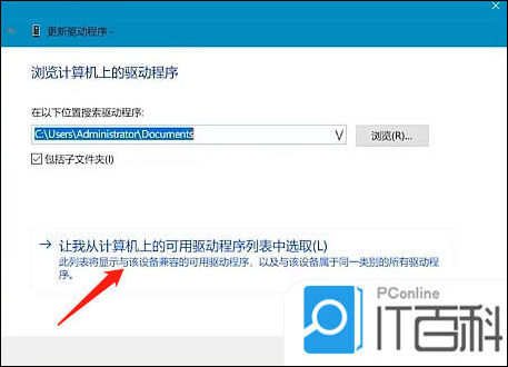 4. 选择从我的计算机上的可用驱动程序列表中选取;