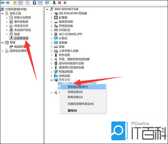 2. 进入页面点击设备管理器,展开图像设备,右键单击摄像头设备,选择更新驱动程序;