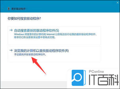 3. 弹出窗口点击浏览我的计算机以查找驱动程序软件;