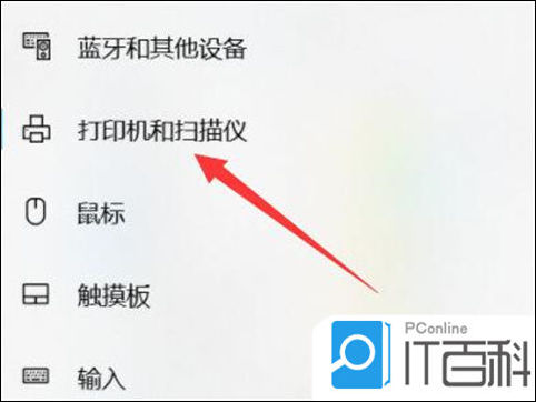 5、然后进入左边“ 打印机和扫描仪 ”。