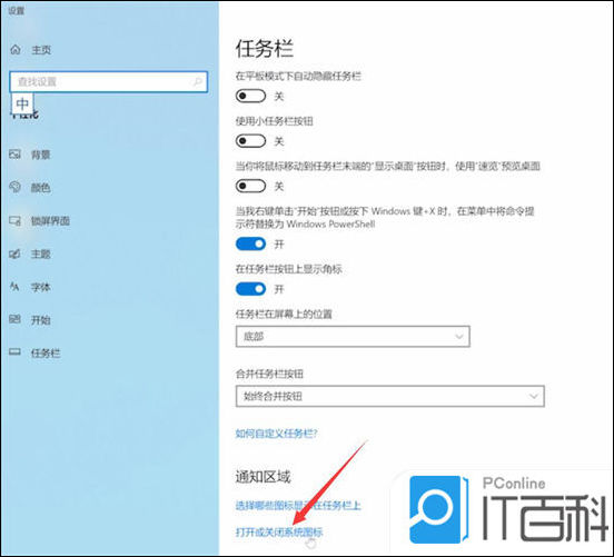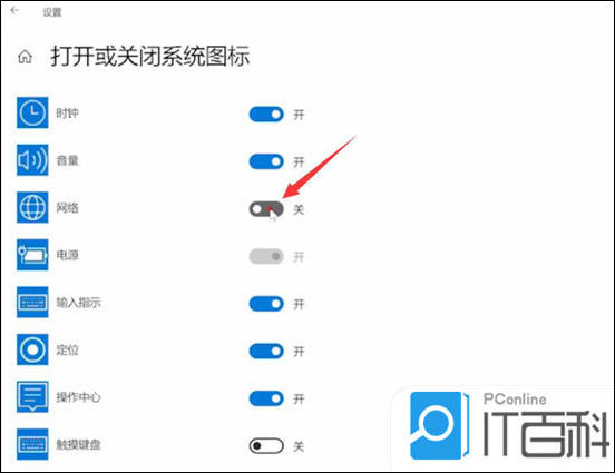 2、 点击 打开或关闭系统图标 ,开启 网络 图标;