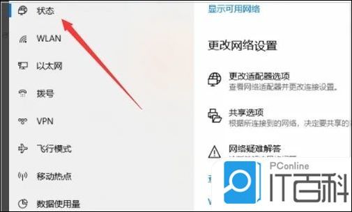 2. 在新的界面中,左边找到“状态”,并选择它;