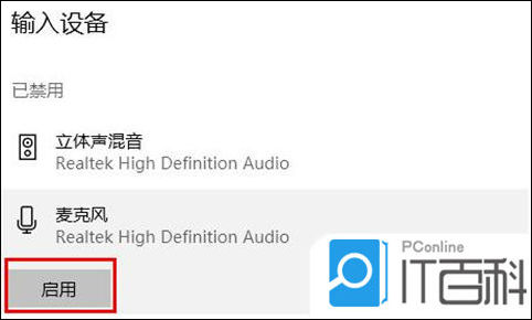 4. 最后在输入设备下面点击“麦克风”,选择“启用”即可。
